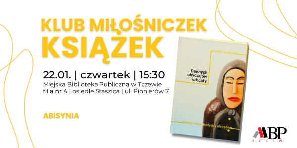 Serdecznie zapraszamy na kolejne spotkanie Klubu Miłośniczek Książek, które odbędzie się 15 stycznia (czwartek) o godz. 15:30 w filii nr 4 przy ul. Pionierów 7 na Abisynii.